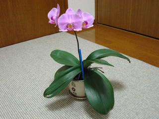 >チョコさん この胡蝶蘭は、息子が小学生の時に、葉っぱが 親指ほどの大きさしかない苗を買って育てた ものなの(^◇^)だから愛着があるわ~♪ 今年は3個しか花が咲かなかったけれど、 咲いている間は見て楽しむわ♪(o^-^o)