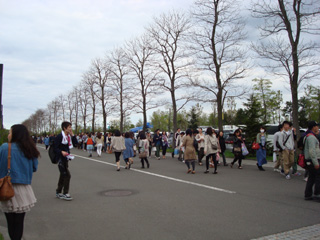人の長~~い列が・・・。これじゃ、買えるまでに何十分かかるか分かりません。息子とほーちゃんにグッズを買ってあげようと思ったのに・・・。買えなくてごめんね~~(ノ◇≦。)